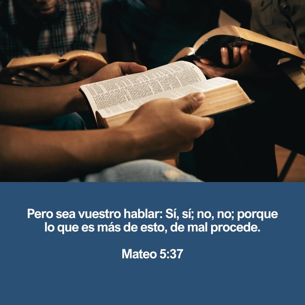 “Además habéis oído que fue dicho a los antiguos: No perjurarás, sino cumplirás al Señor tus juramentos. Pero yo os digo: No juréis en ninguna manera; ni por el cielo, porque es el trono de Dios; ni por la tierra, porque es el estrado de sus pies; ni por Jerusalén, porque es la ciudad del gran Rey. Ni por tu cabeza jurarás, porque no puedes hacer blanco o negro un solo cabello. Pero sea vuestro hablar: Sí, sí; no, no; porque lo que es más de esto, de mal procede.”